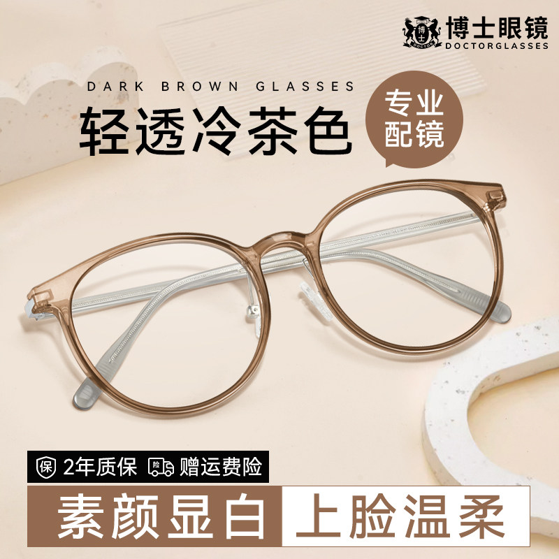 超轻冷茶色近视眼镜框女防蓝光可配度数素颜高级感眼睛镜架男圆框