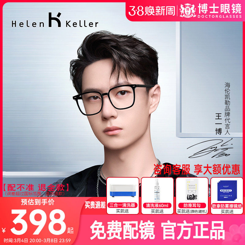 王一博同款海伦凯勒近视眼镜素颜黑框眼镜架男女配蔡司镜片H87004