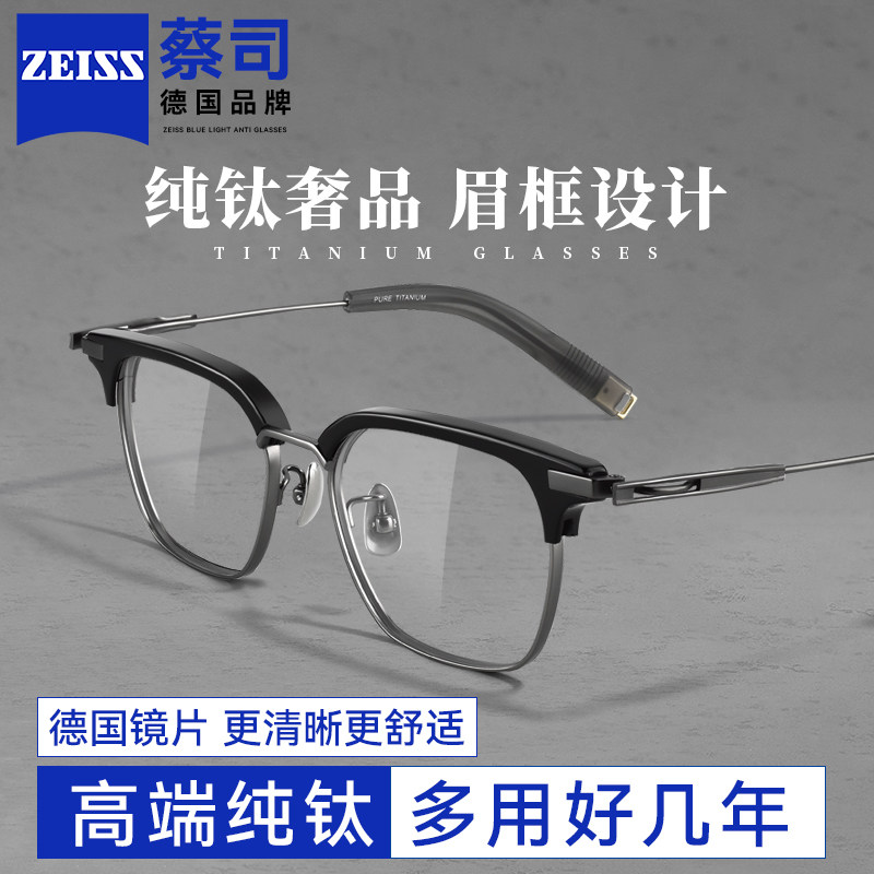 德国蔡司近视眼镜男款可配度数眉线半框超轻钛架防蓝光眼睛镜框女