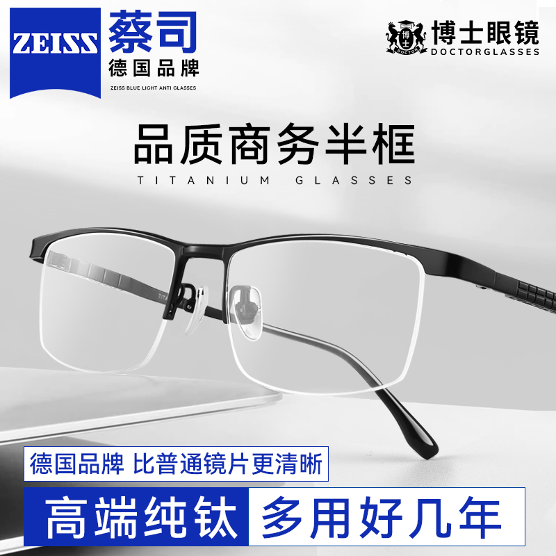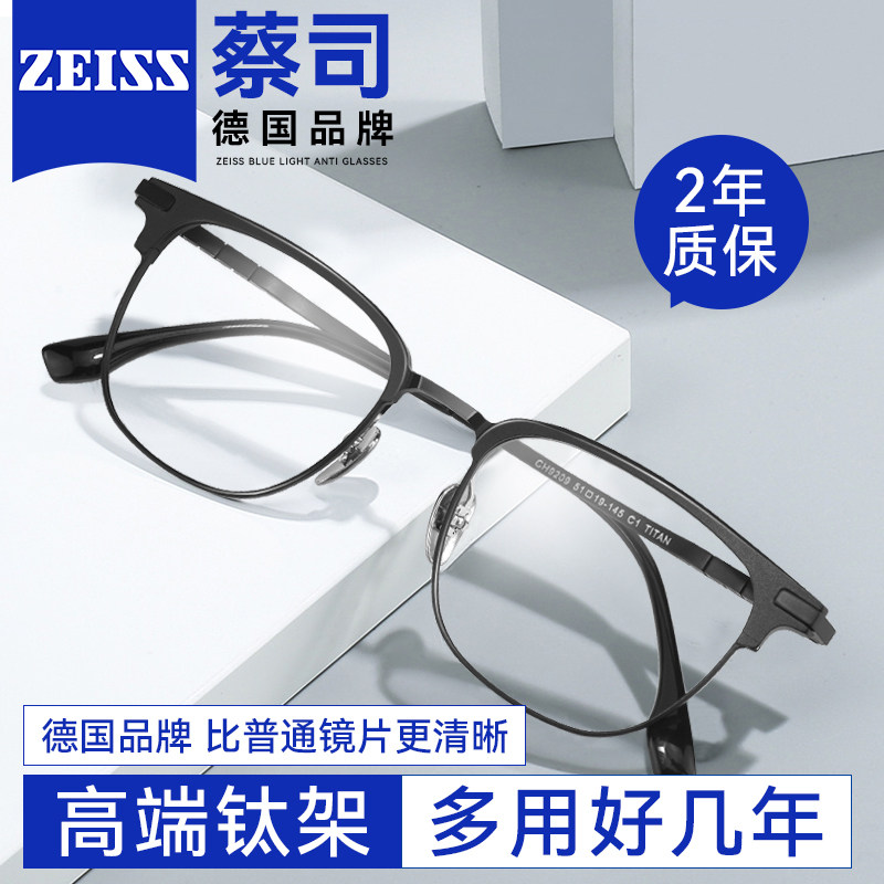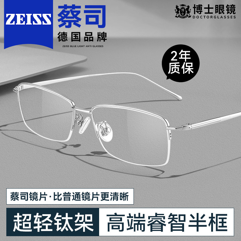 德国蔡司近视眼镜男可配度数防蓝光钛架轻商务半框专业网上配镜女