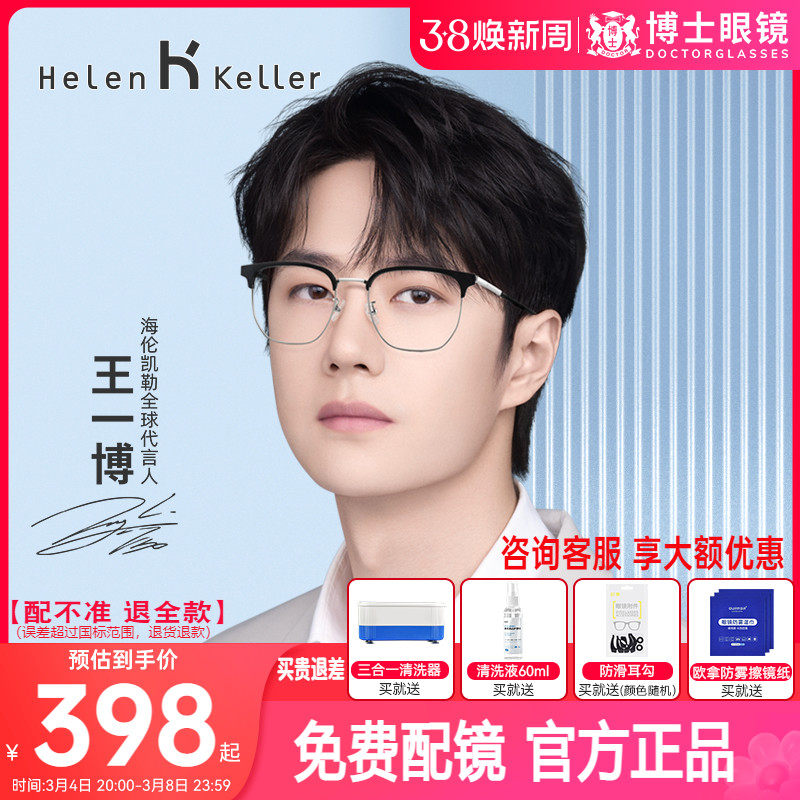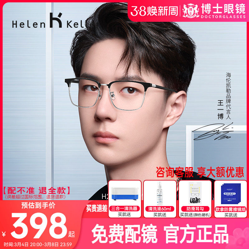 海伦凯勒眼镜框男王一博同款超轻半框眉框镜架配近视度数博士眼镜