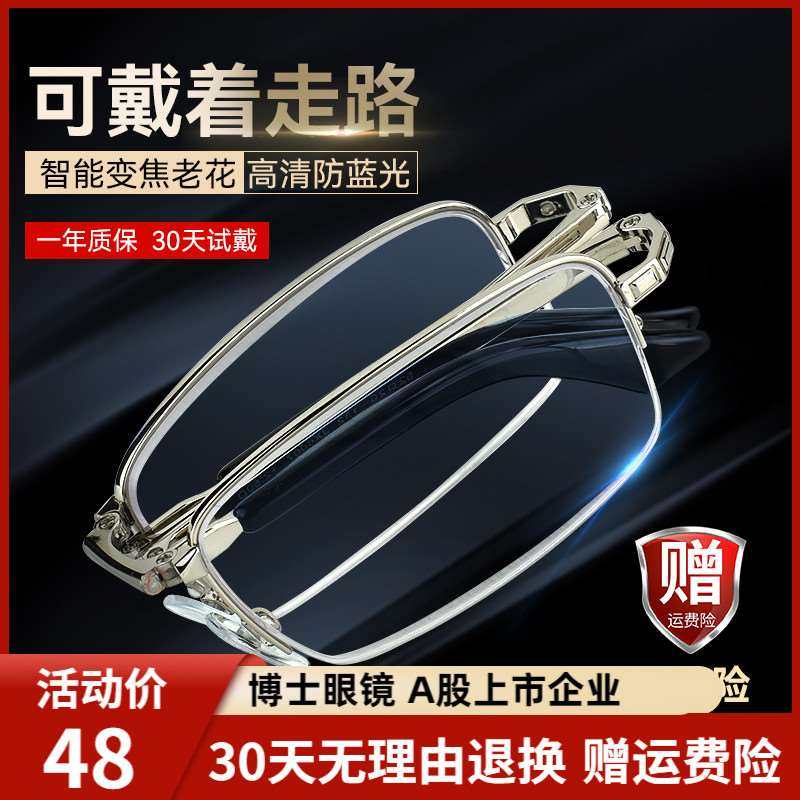 博士眼镜欧拿老花镜男士远近两用清防蓝光折叠老人老光眼镜女款