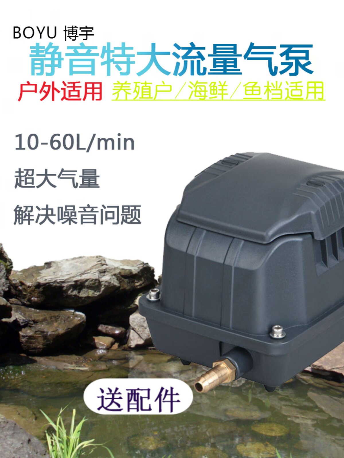博宇鱼缸静音增氧泵大排量鱼池气泵高密度养殖打氧机大气量增氧泵