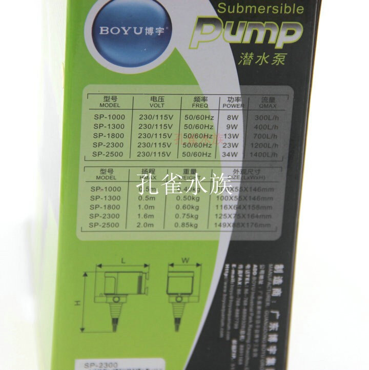 BOYU博宇SP-2300潜水泵水族箱鱼缸潜水泵抽水泵23W 1200L 1.6M