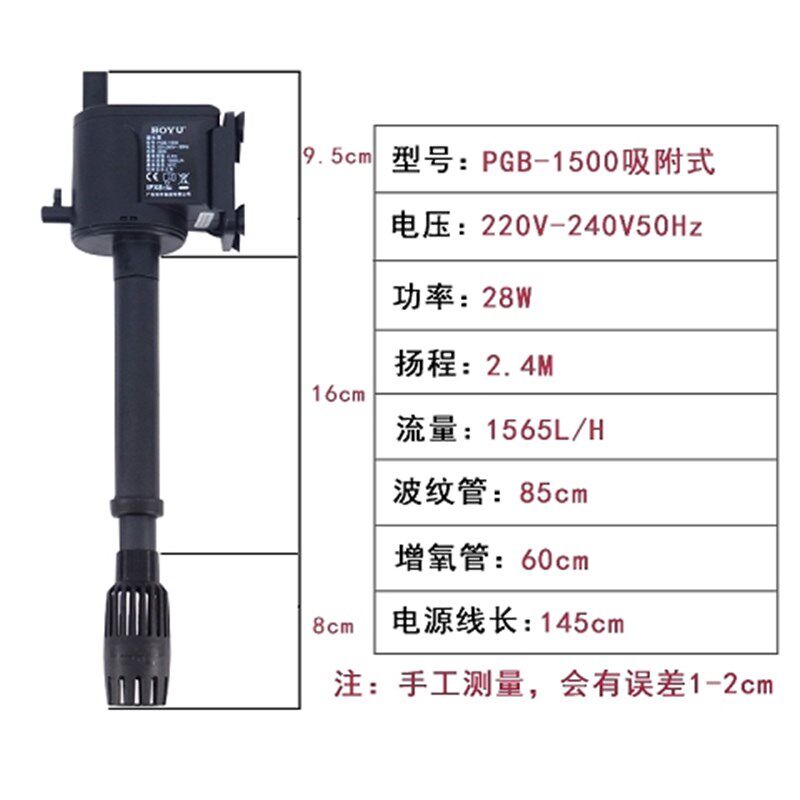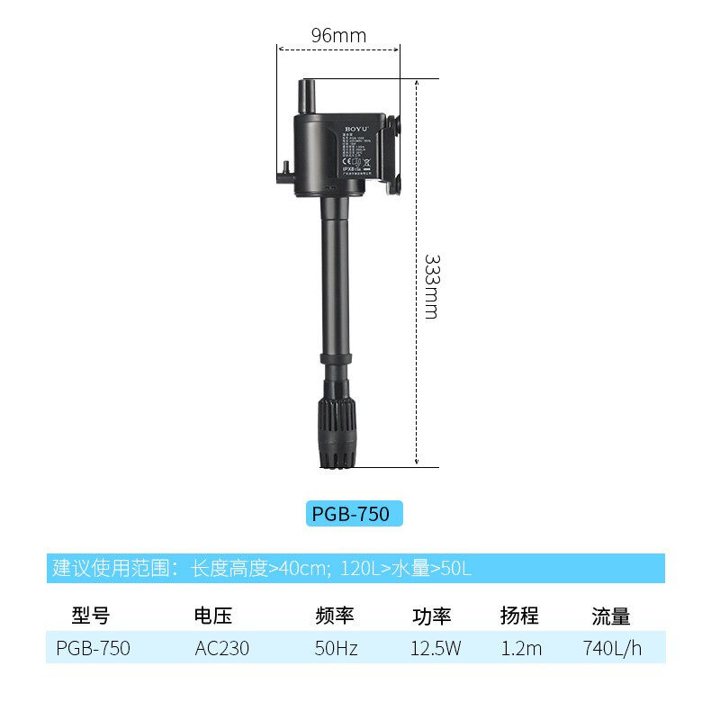 博宇鱼缸潜水泵抽水增氧过滤三合一静音循环泵PGB 750-1000-1500