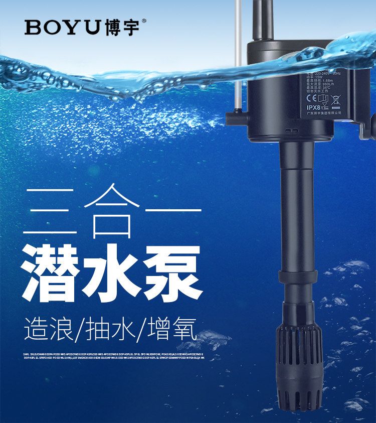 定制博宇 鱼缸过滤器水泵 三合一潜水泵 增氧造浪泵 循环抽水泵吸