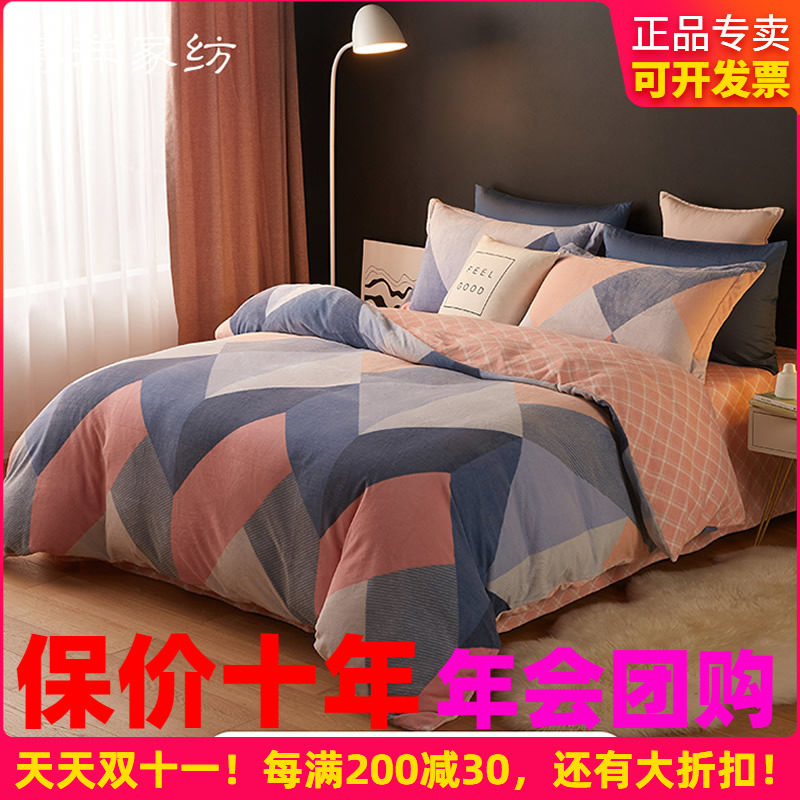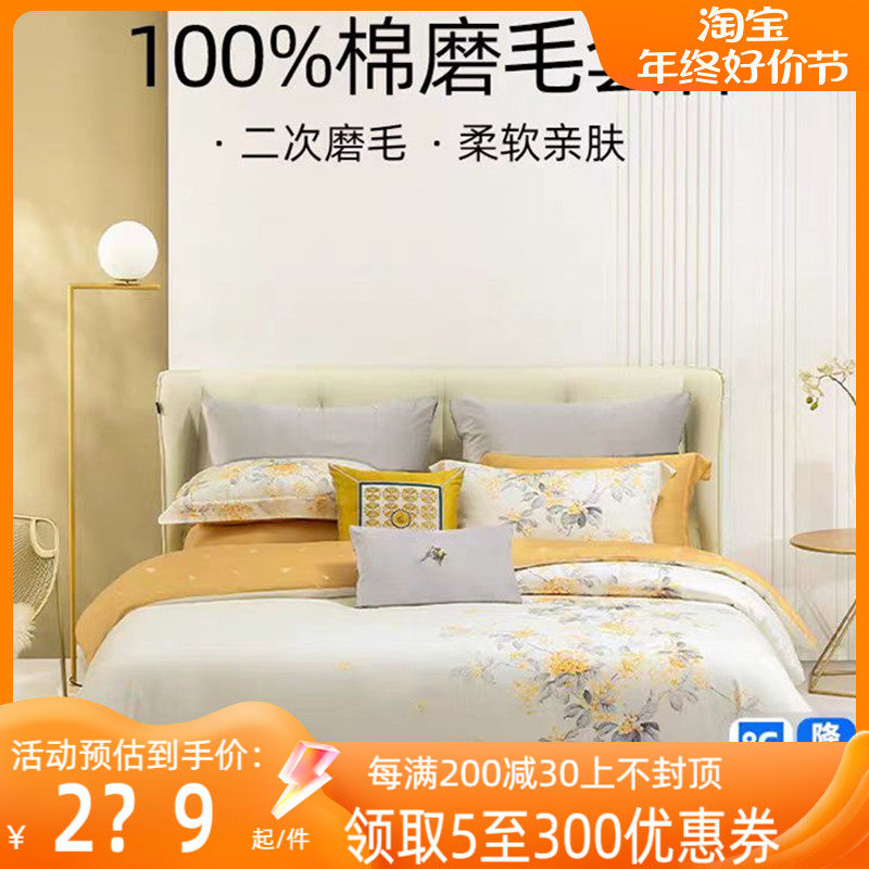 水星家纺全棉磨毛四件套抗菌纯棉套件床单被套床上用品叶开随影