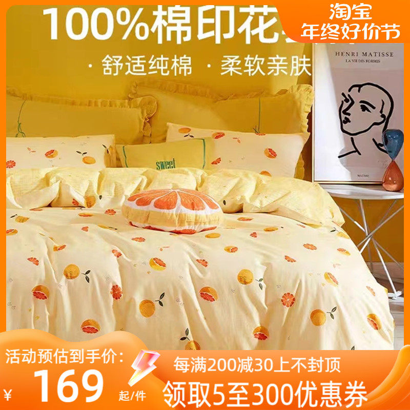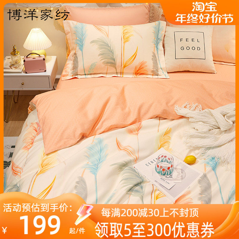博洋家纺夏季四件套全棉纯棉ins花沫磨毛床单被套床笠床上用品