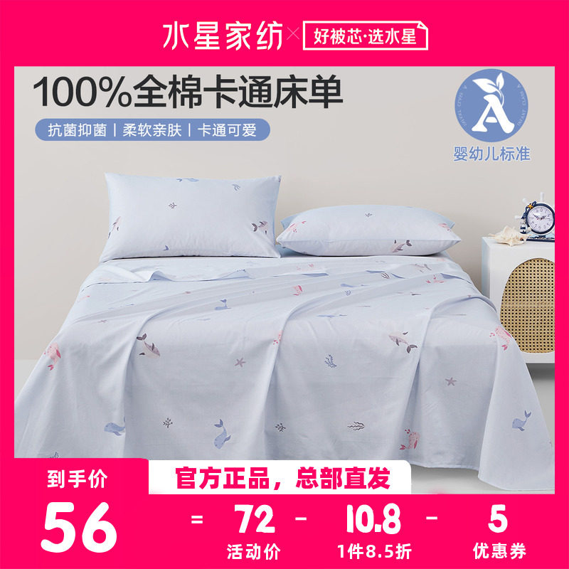 水星抗菌全棉A类床单单件100纯棉儿童卡通宿舍床上用品美美角马
