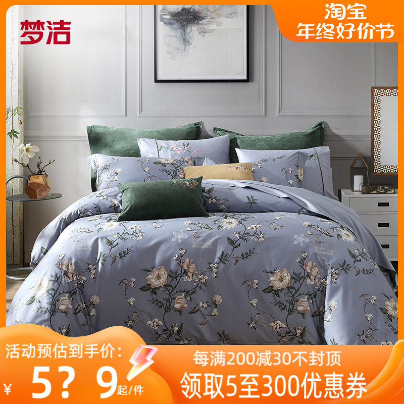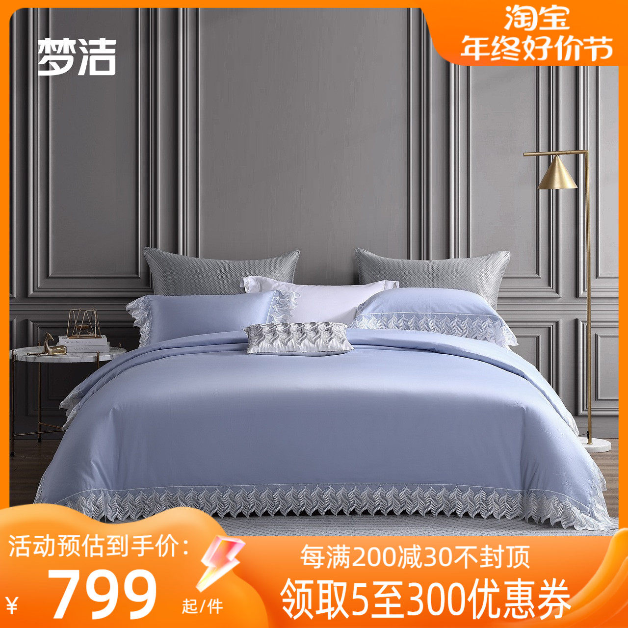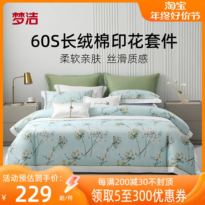 梦洁家纺60支长绒棉纯棉三四件套小清新全棉床单被套床上用品秋冬