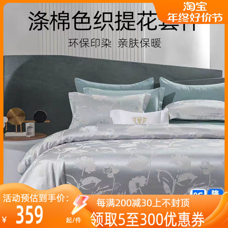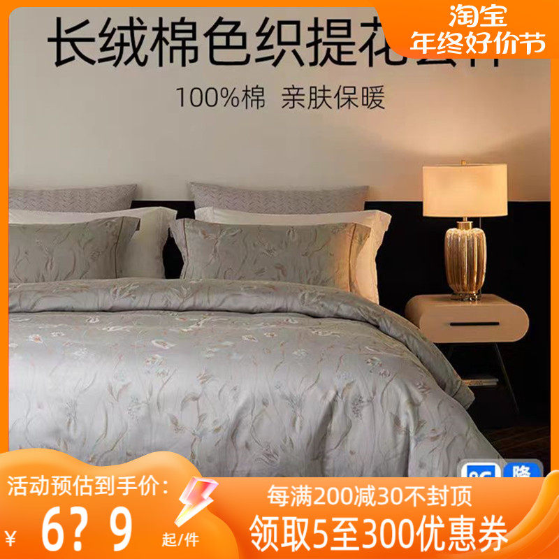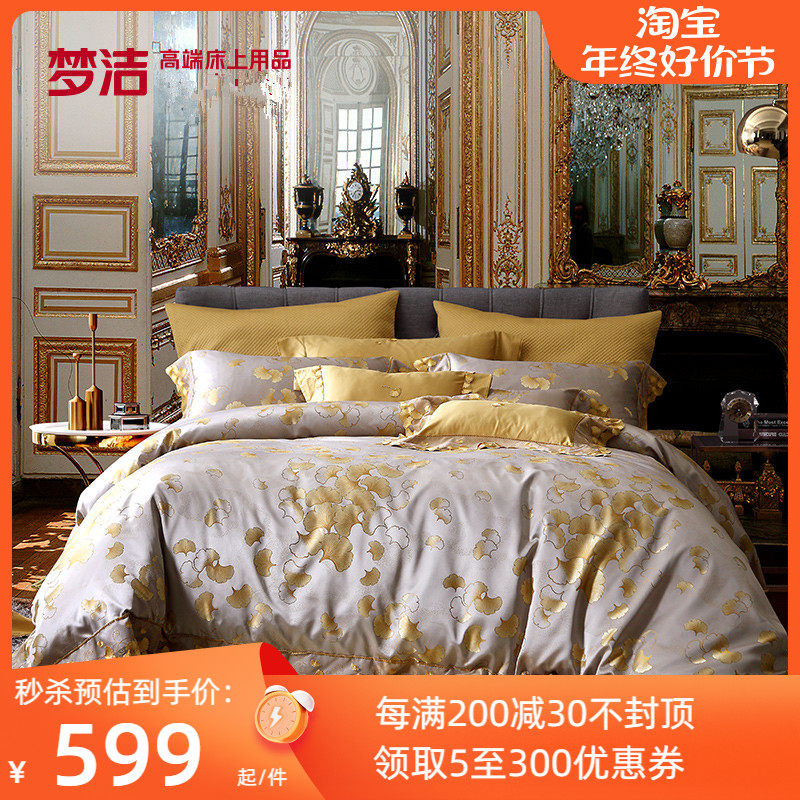 梦洁长绒棉色织提花四件套全棉纯棉秋冬床单被套轻奢高端床上用品