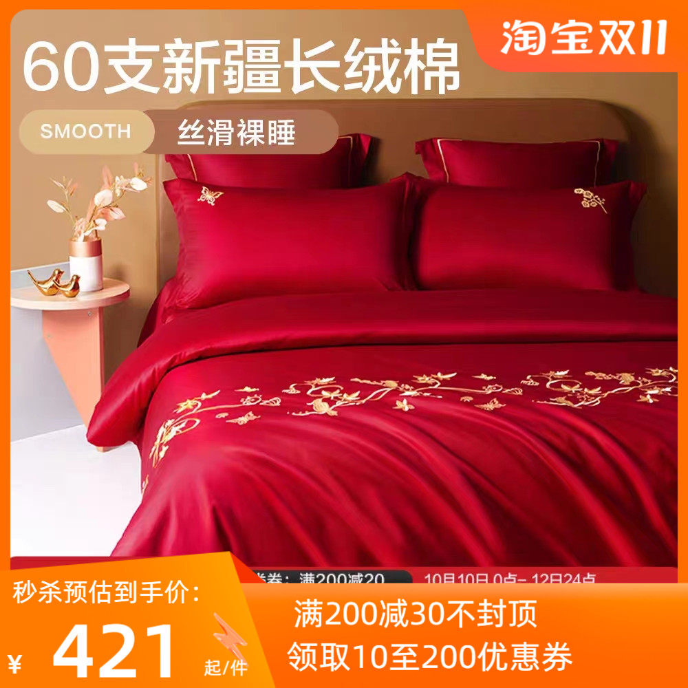 博洋100支红色结婚四件套全棉婚庆床上用品纯棉60大红珊瑚绒套件