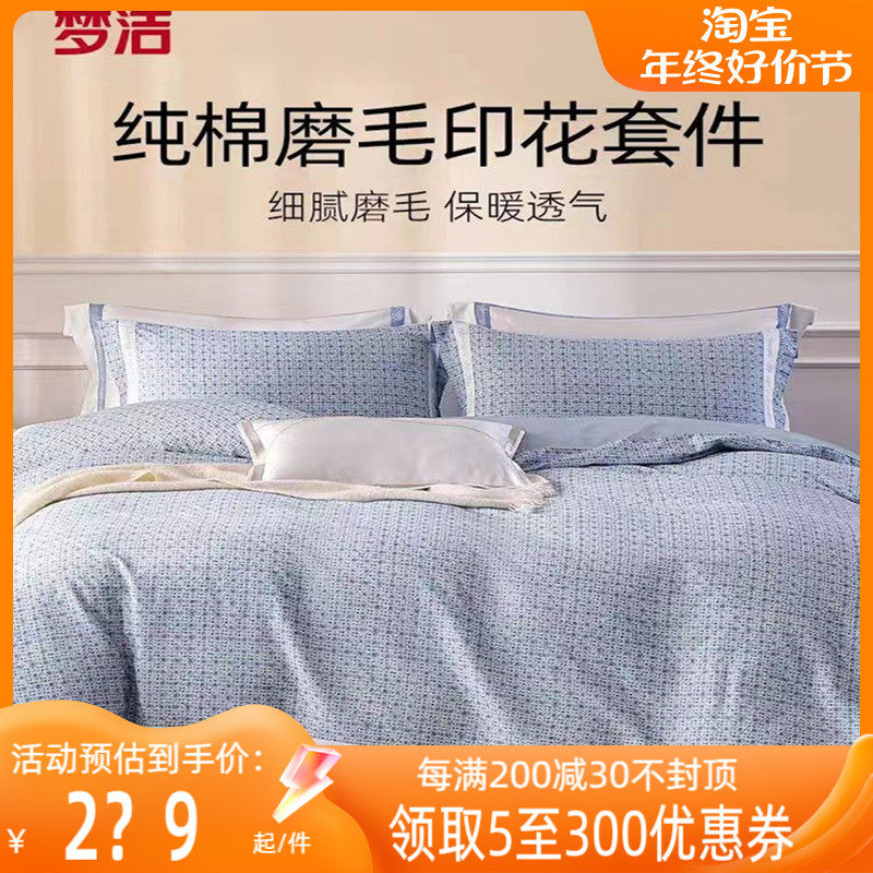 梦洁家纺纯棉磨毛印花四件套秋冬保暖全棉学生宿舍三件套床上用品