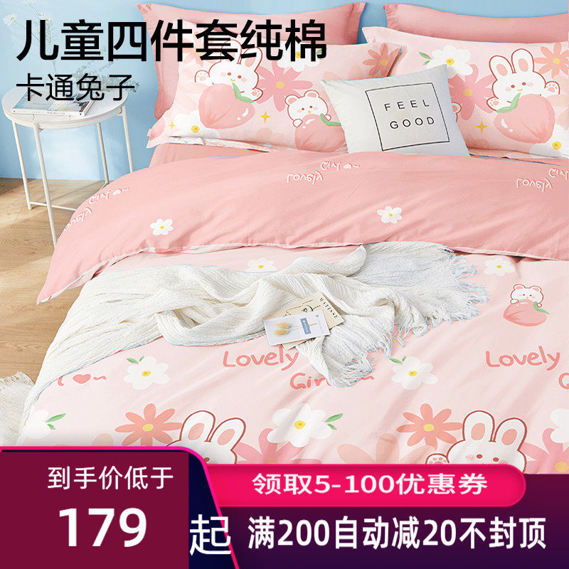博洋儿童四件套纯棉女孩卡通全棉床上用品被套床单粉色三件套夏季