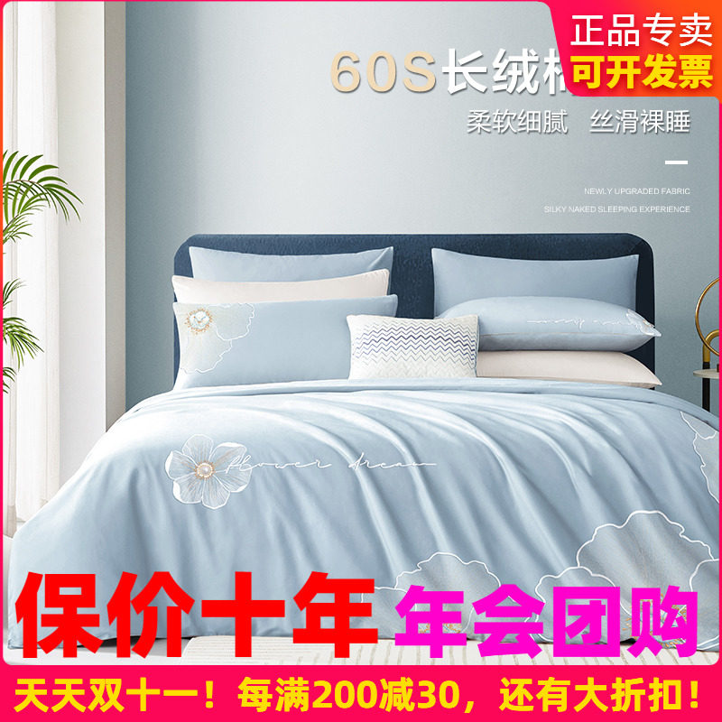 博洋家纺60支长绒棉四件套全棉纯棉高级被套轻奢床单四季床上用品
