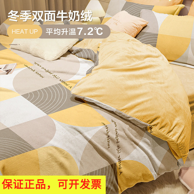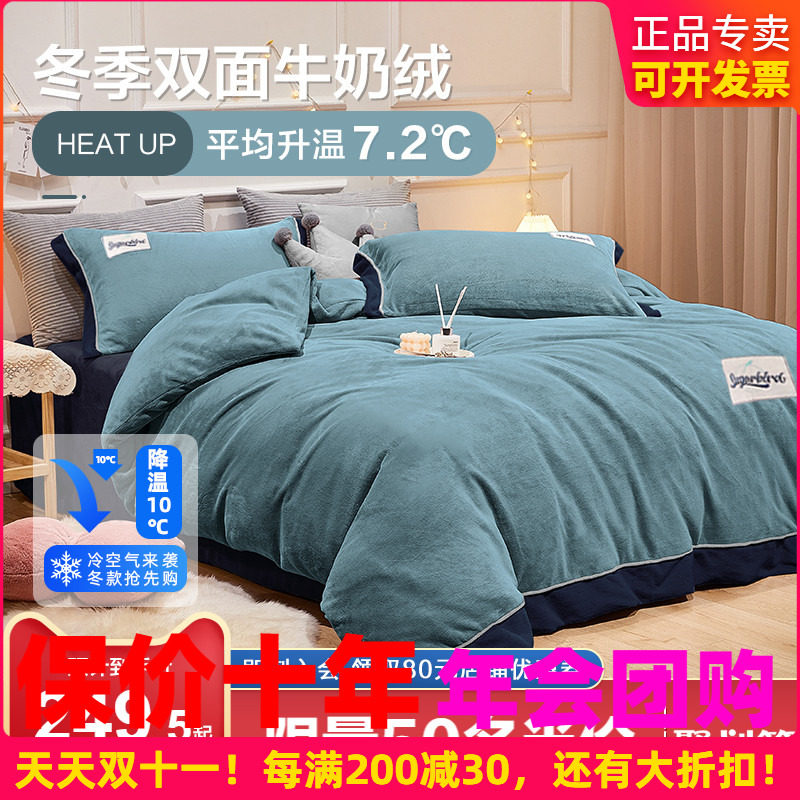 博洋冬季牛奶绒四件套法兰绒加厚被套珊瑚绒加厚双面床上用品冬天