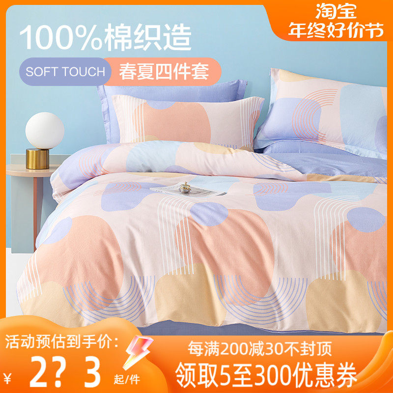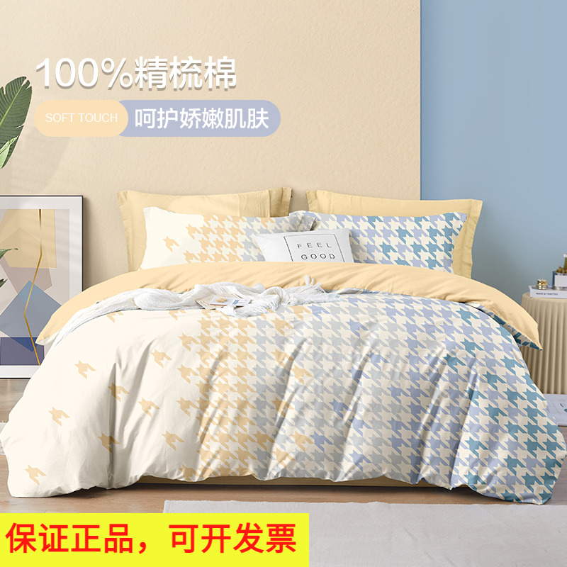 博洋家纺男女士简约全棉四件套纯棉春秋夏床上用品学生宿舍三件套