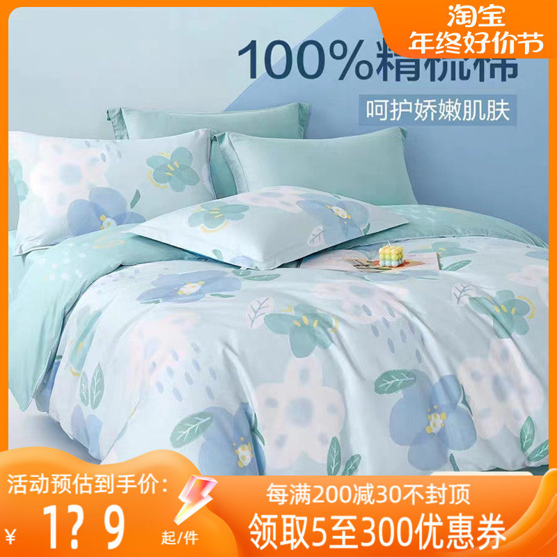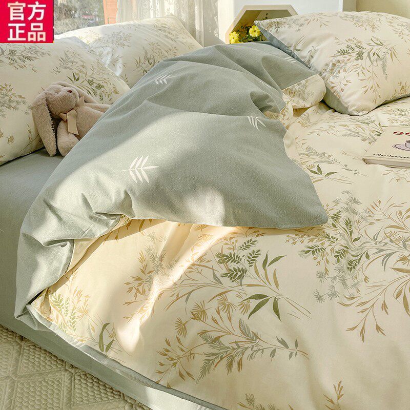 梦洁家纺四件套纯棉全棉小清新床上用品三件套单人床春秋床单被套