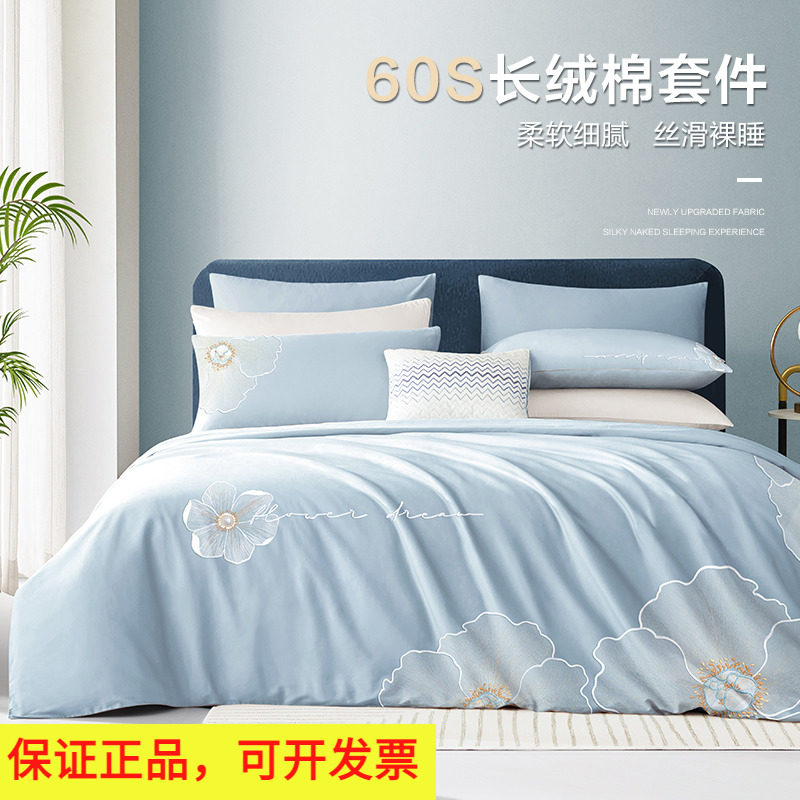 梦洁60S长绒棉纯棉全棉100三四件套被子床单床上用品学生宿舍床品