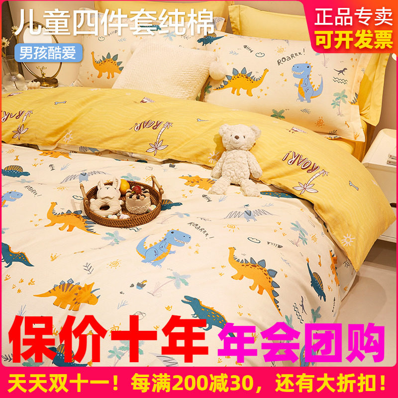 博洋纯棉儿童四件套男孩床上用品恐龙全棉磨毛卡通床单被套三件套