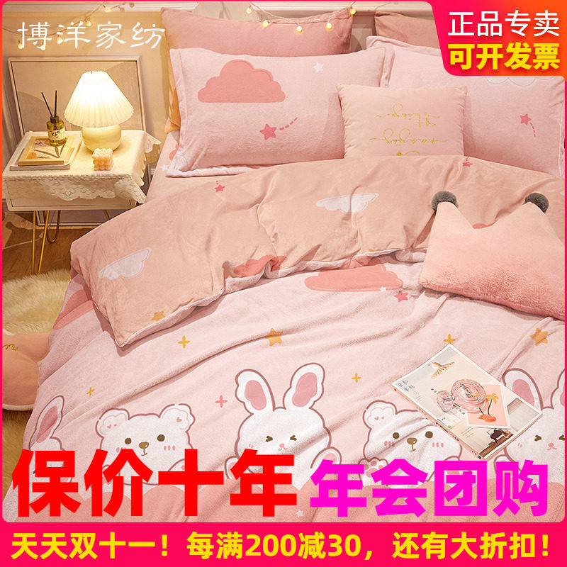 博洋家纺珊瑚绒四件套少女心床单法兰绒床上用品保暖加厚床品秋冬