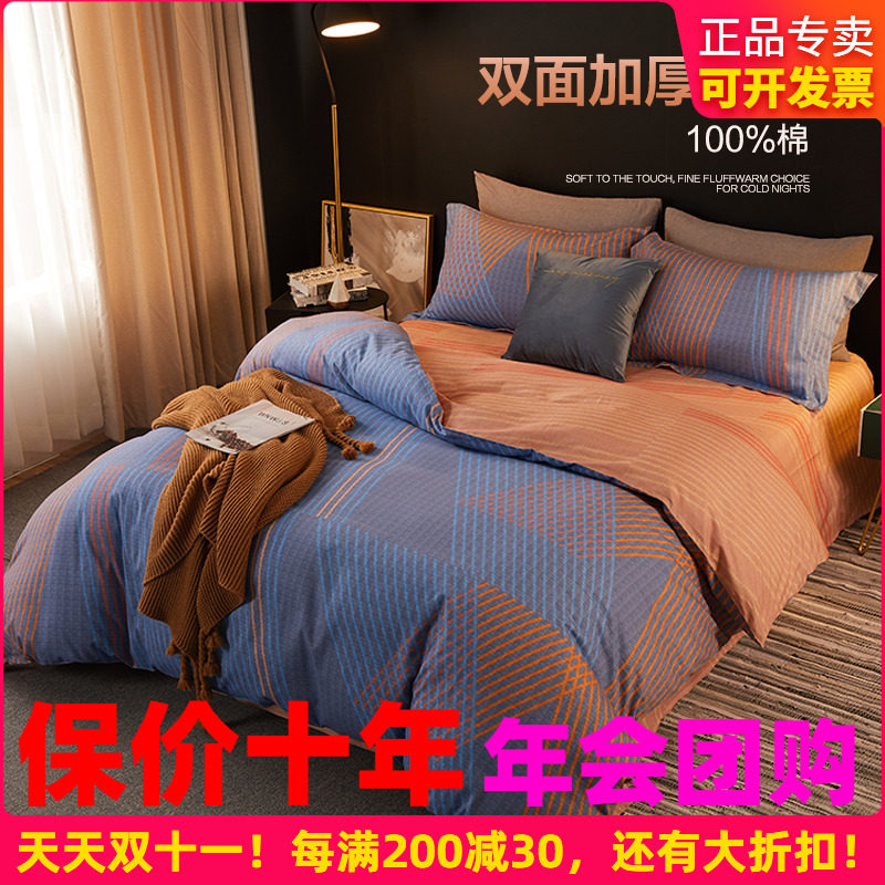 博洋磨毛纯棉四件套秋冬加厚全棉床上用品简约冬天被套冬季床单厚