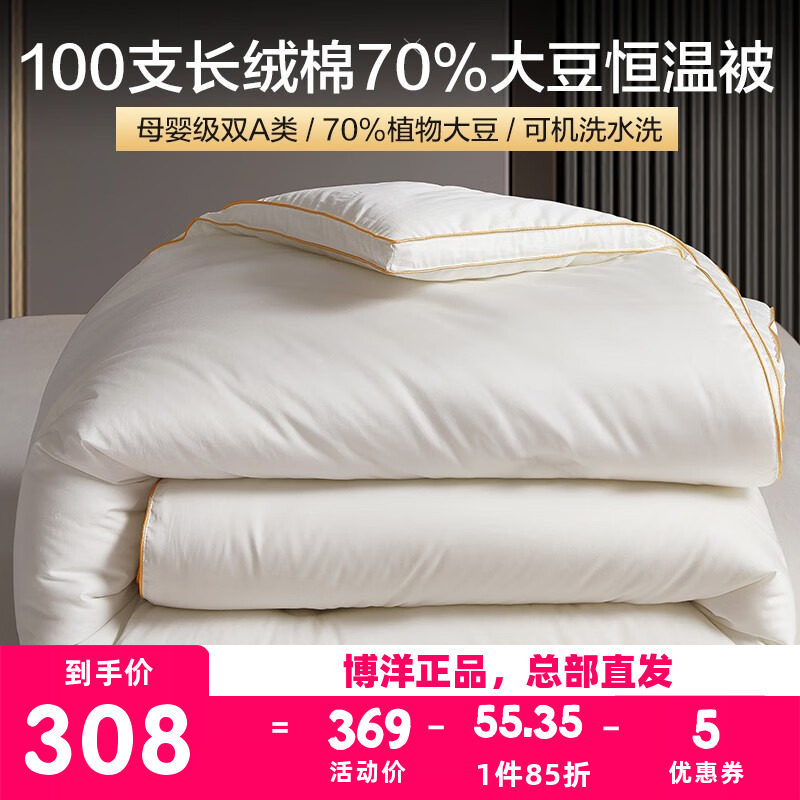 博洋家纺100支长绒棉70%大豆春秋被子纯棉双人夏季夏凉空调被被芯