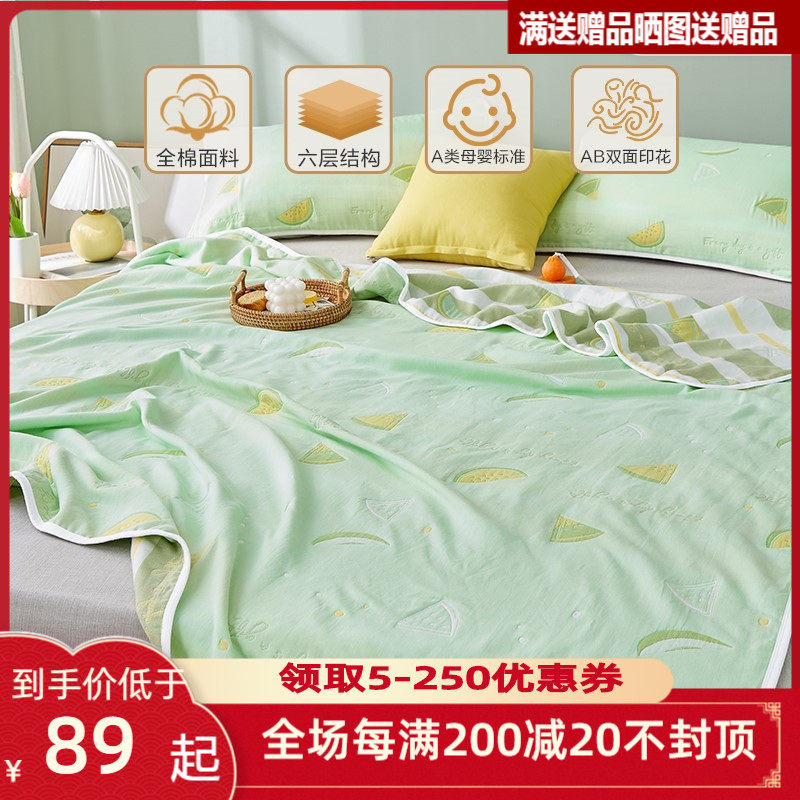 博洋毛巾被纯棉六层纱布盖毯全棉儿童午睡毯学生空调毯毯子夏季薄
