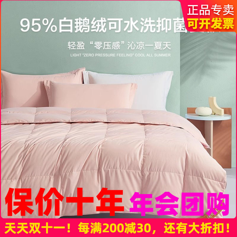 博洋夏季95白鹅绒被子被芯空调被单双人床可水洗机洗羽绒夏秋被