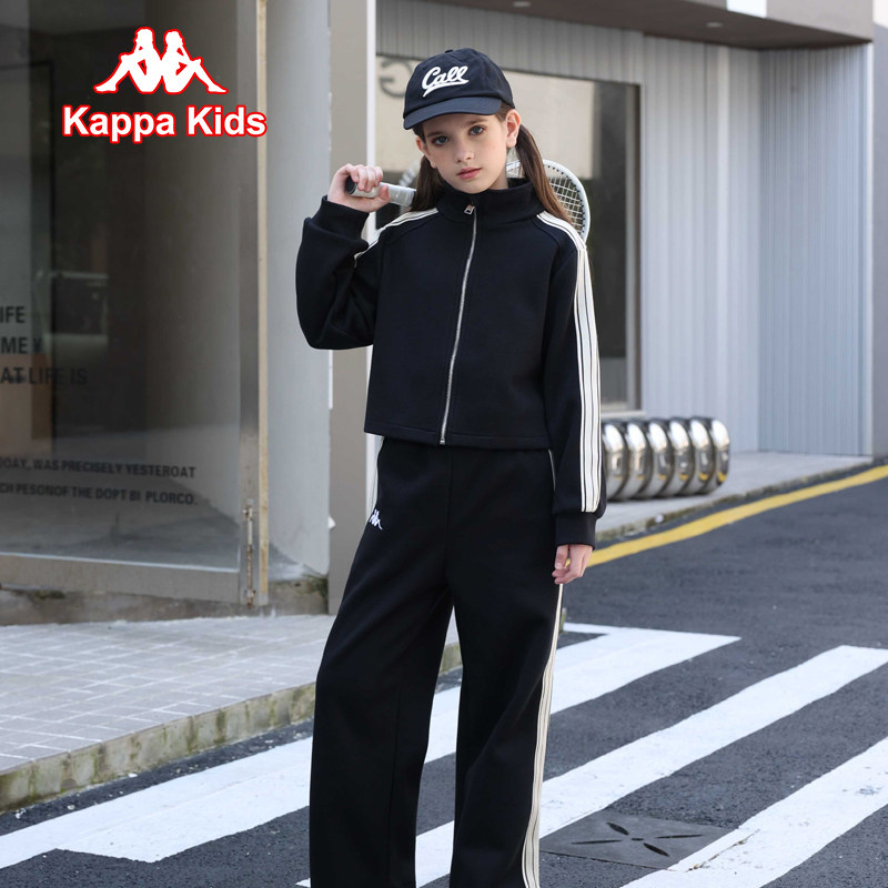 Kappa kids女童运动套装网红休闲衣服洋气儿童条纹外套裤子两件套