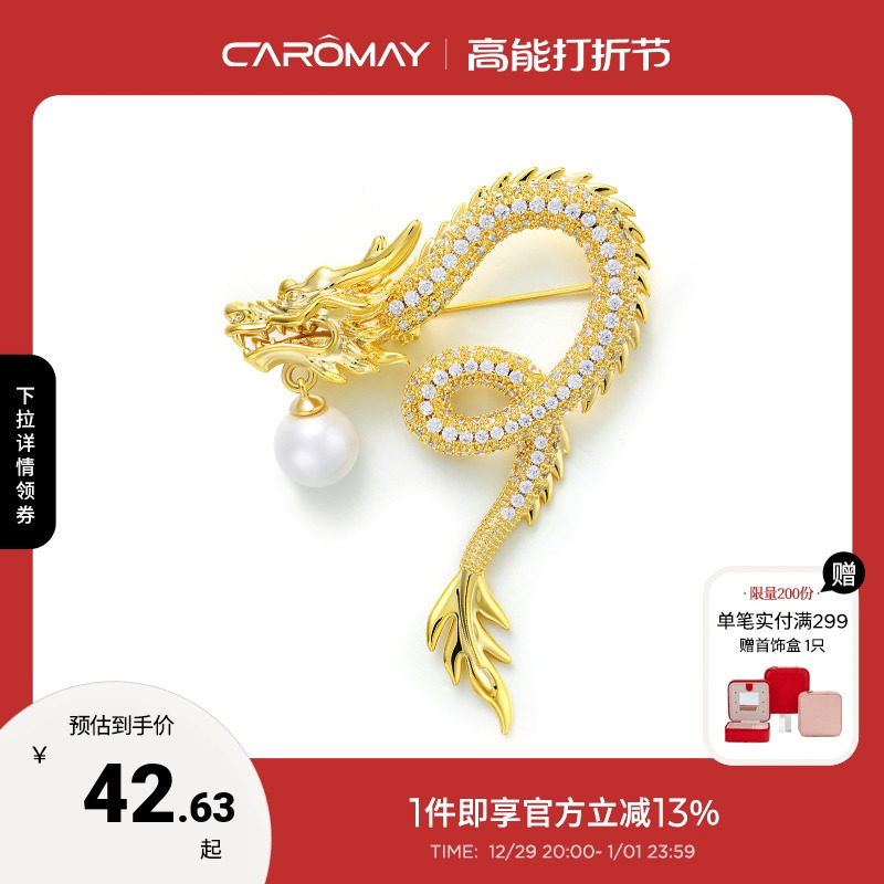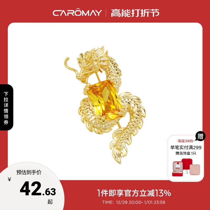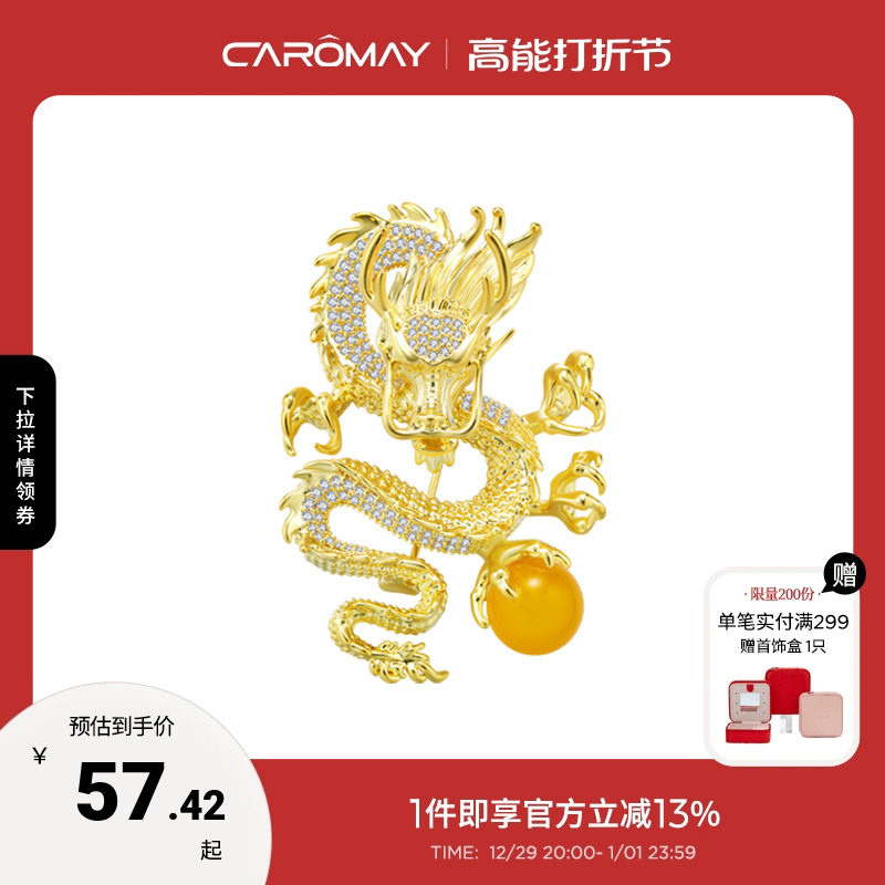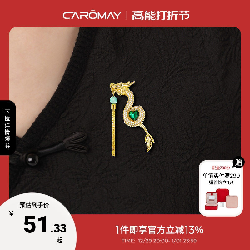 CAROMAY中国风生肖龙胸针女本命年高档个性别针礼服大衣领针配饰