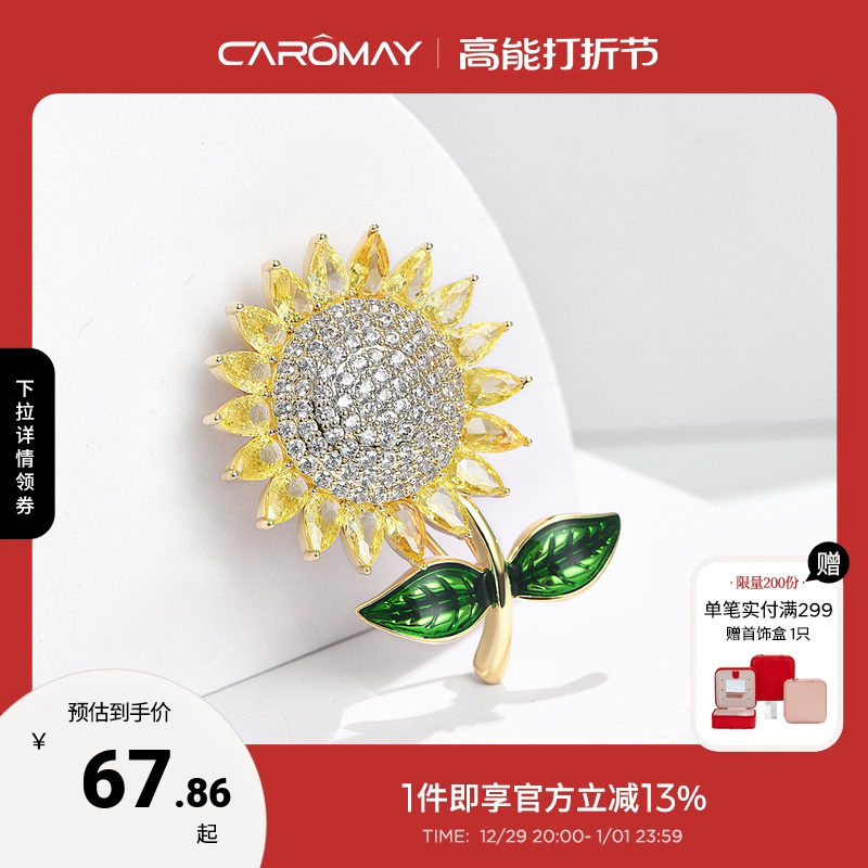 CAROMAY向日葵花朵胸针高档女胸花装饰西装大衣太阳花领扣别针