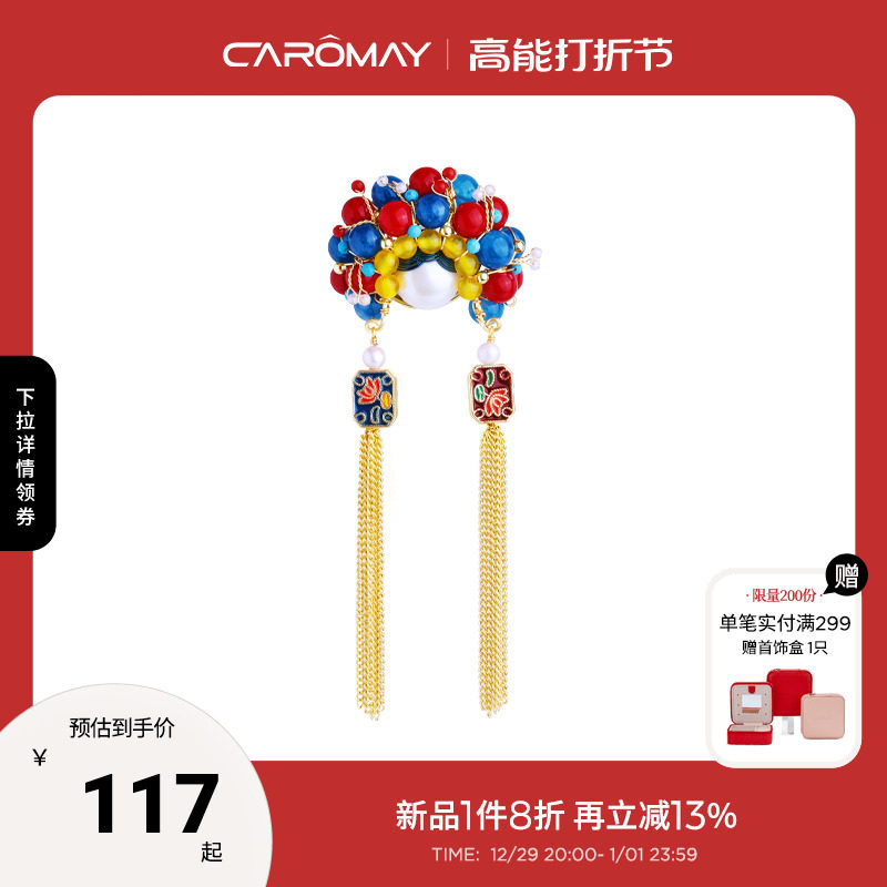 CAROMAY国潮京剧脸谱珍珠胸针女高档珐琅彩旗袍扣针西装大衣领针