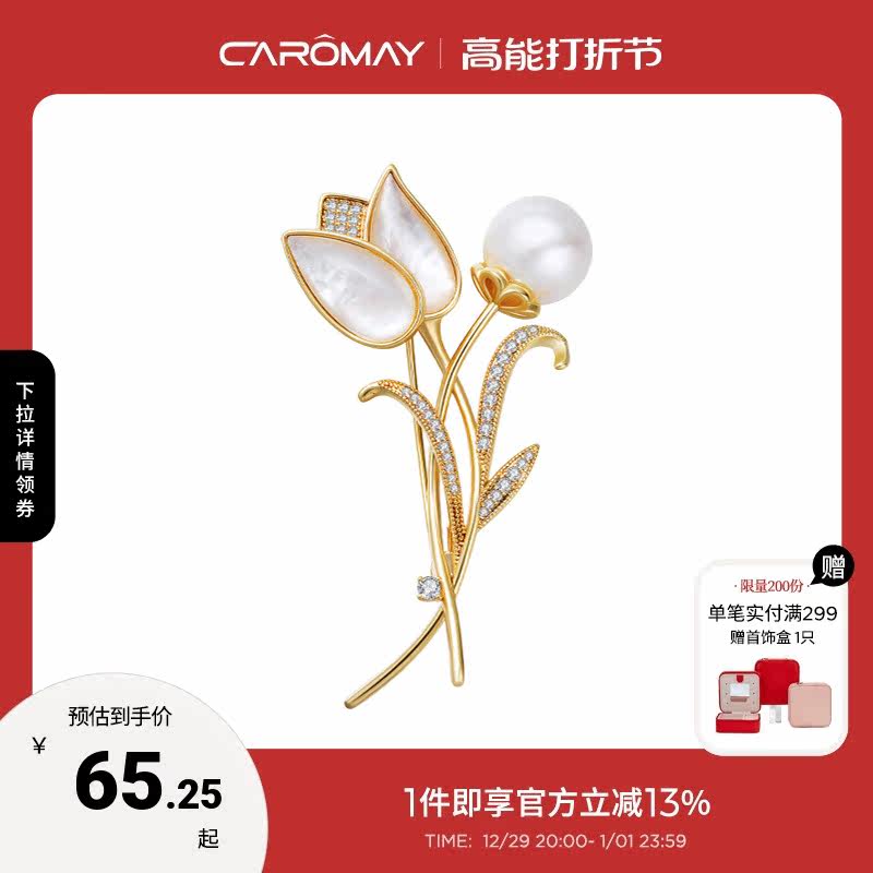 CAROMAY郁金香仿珍珠胸针秋冬大衣领针高级感礼服毛衣扣针配饰女