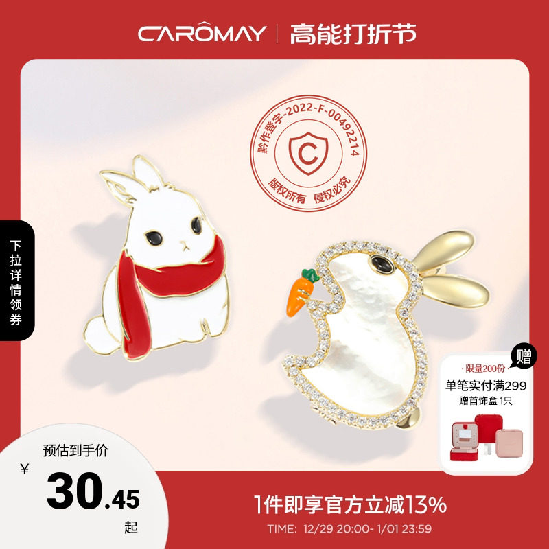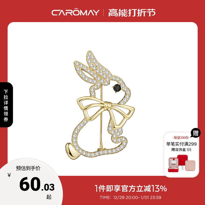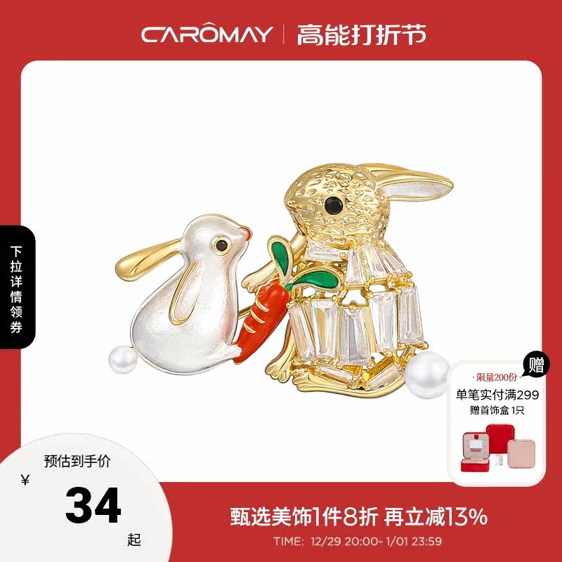 CAROMAY瑞兔呈祥胸针高档女2023年新款大衣别针固定衣服胸花配饰