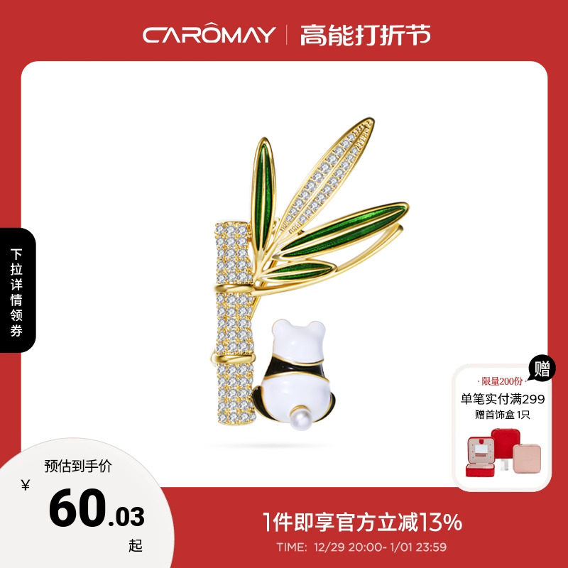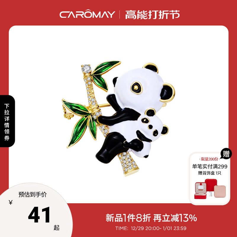 CAROMAY竹报平安熊猫胸针女ins小众别针西装大衣领针毛衣扣针配饰