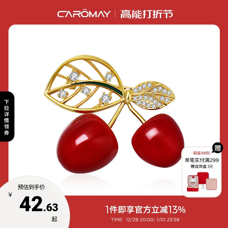 CAROMAY红色樱桃圣诞节胸针女秋冬大衣高档别针毛衣旗袍压襟配饰