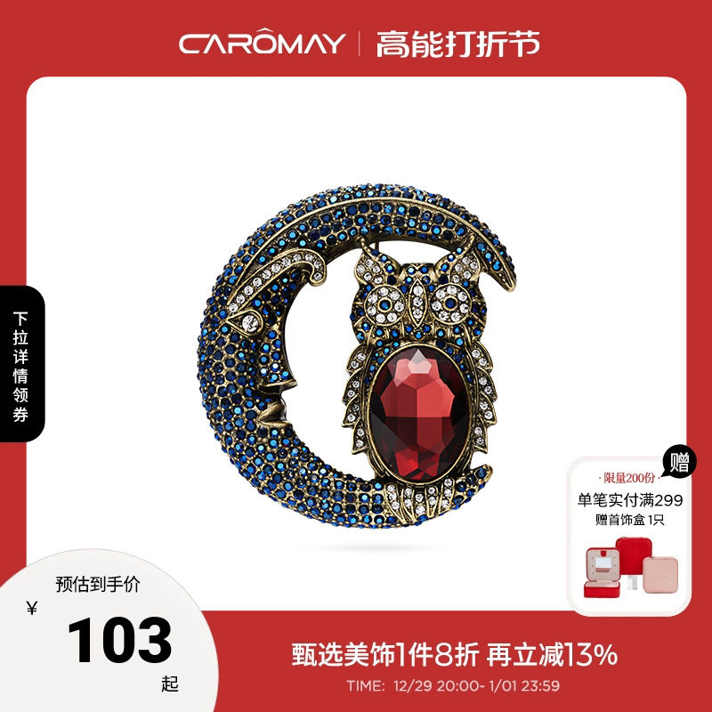 CAROMAY欧美复古风月亮猫头鹰胸针女小众外套大衣别针毛衣扣胸花