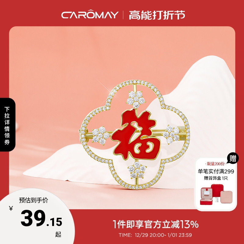 CAROMAY红色福字胸针新年秋冬大衣别针国潮胸花女设计感西装配饰