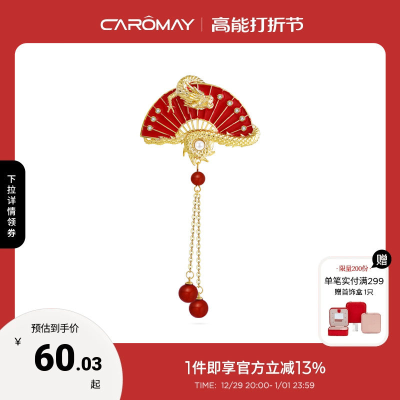 CAROMAY本命年金龙舞扇胸针女新年红色折扇别针大衣西装领针配饰