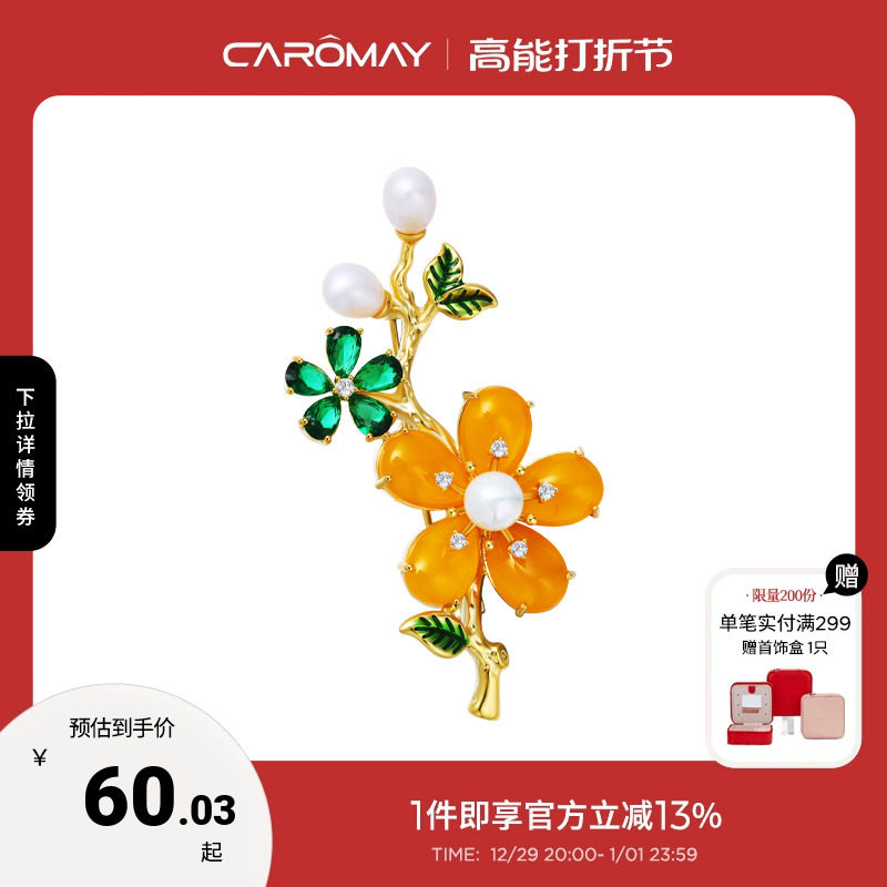 CAROMAY花开物语珍珠胸针女高档精致胸花礼服西装别针毛大衣领针