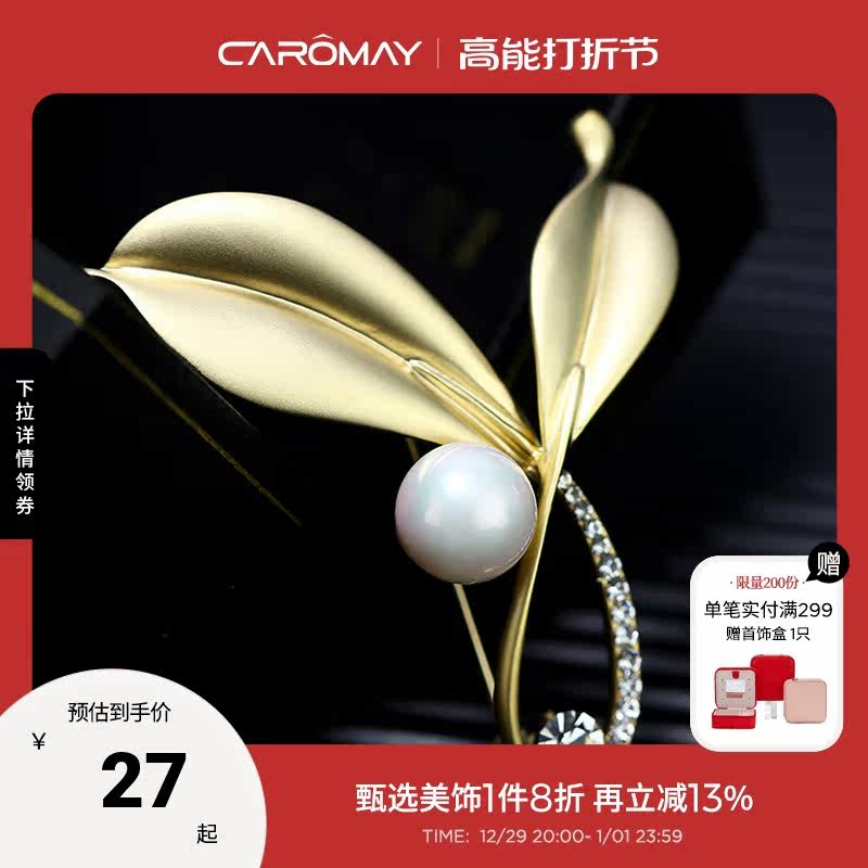 CAROMAY饰品 时尚叶子韩版贝珠胸针女 韩国秋冬别针胸花大衣配饰