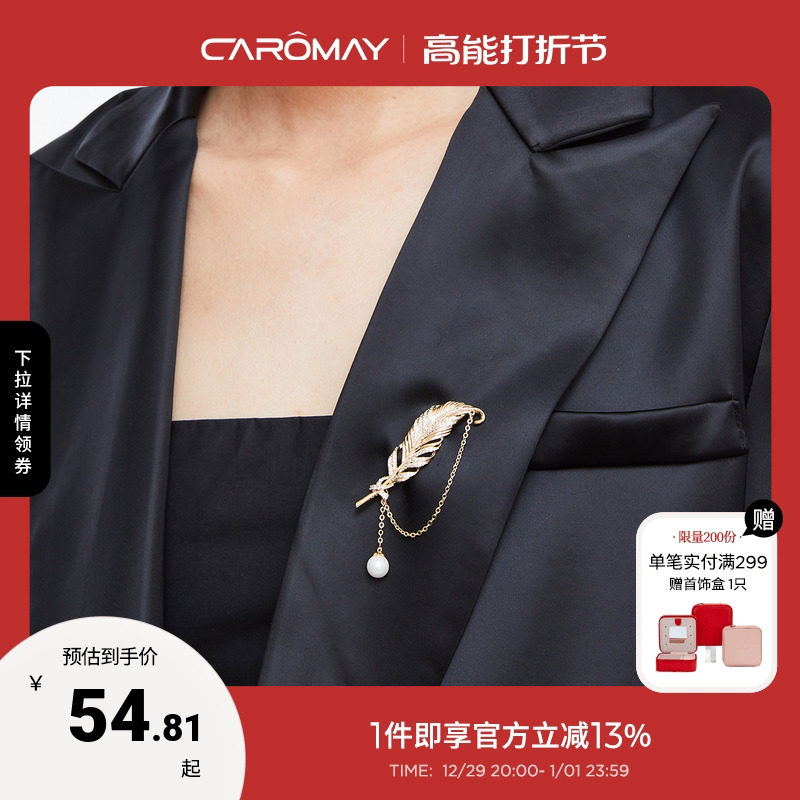 CAROMAY羽毛流苏胸针轻奢气质胸花西装领口配饰别针大衣礼服装饰
