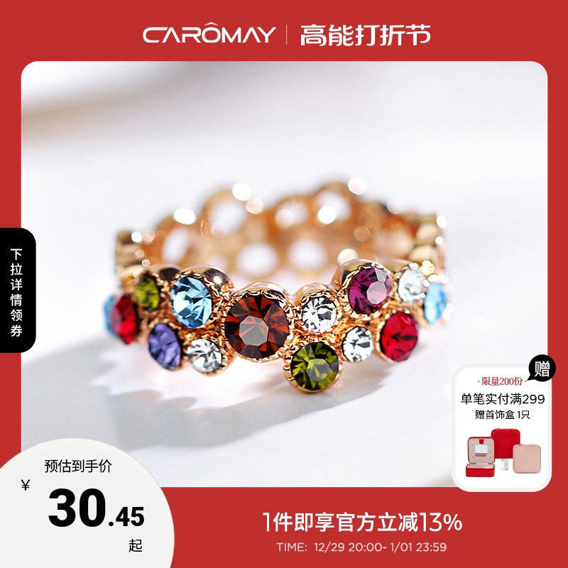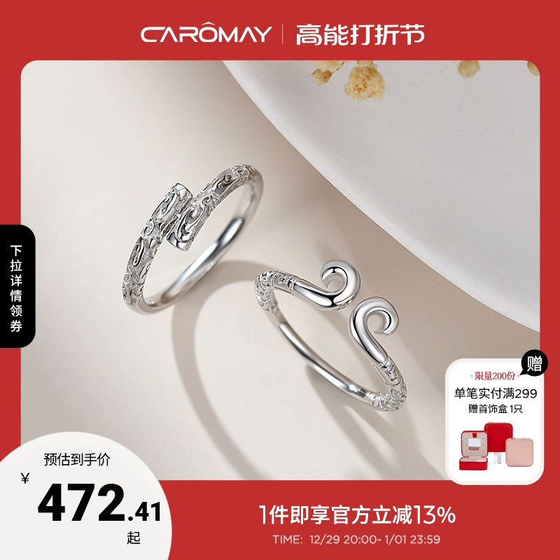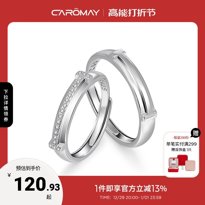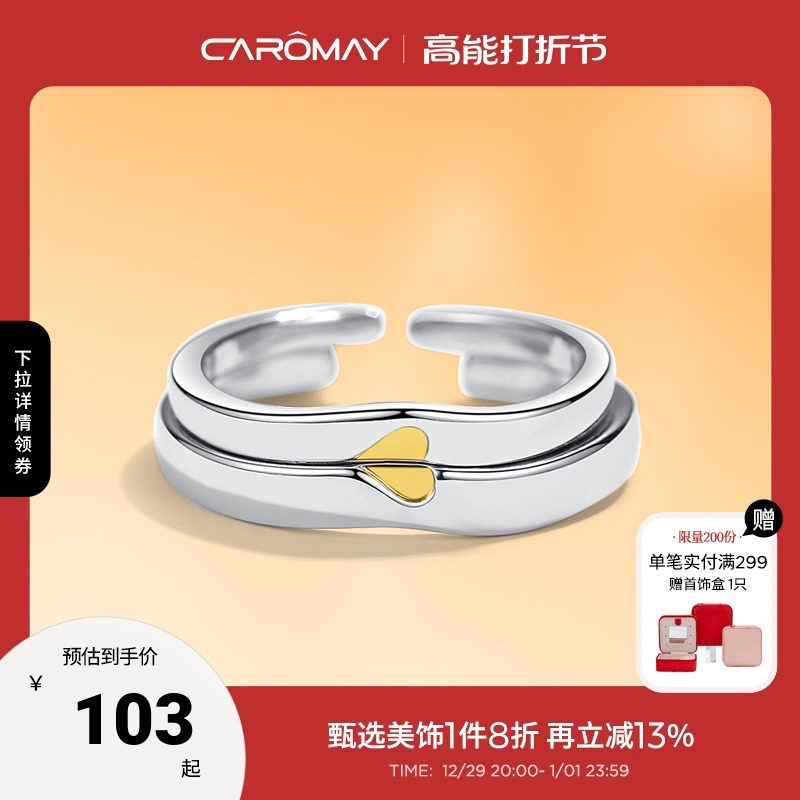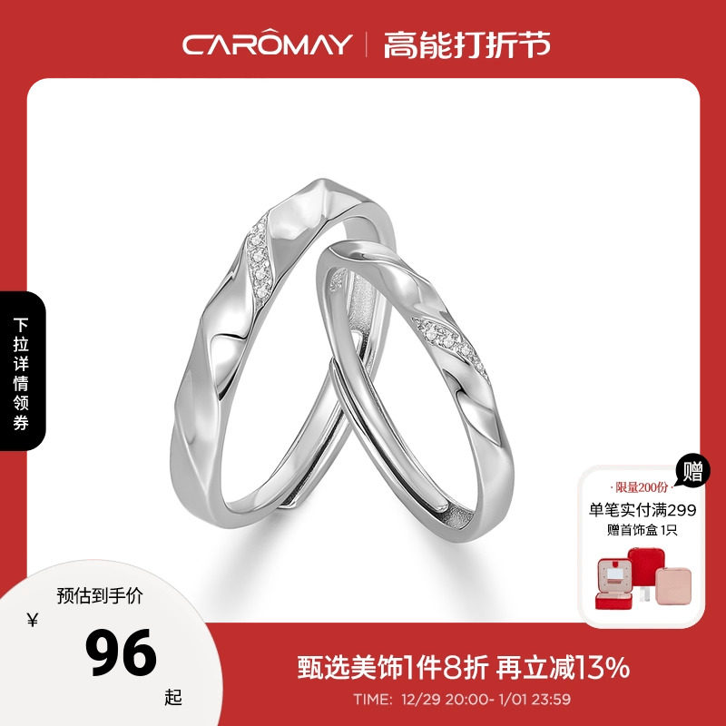 CAROMAY银饰情侣对戒S925银开口戒指小众轻奢戒指女男情人节送礼