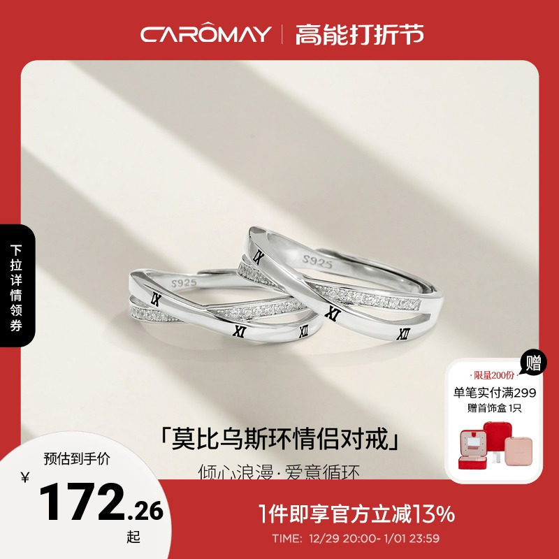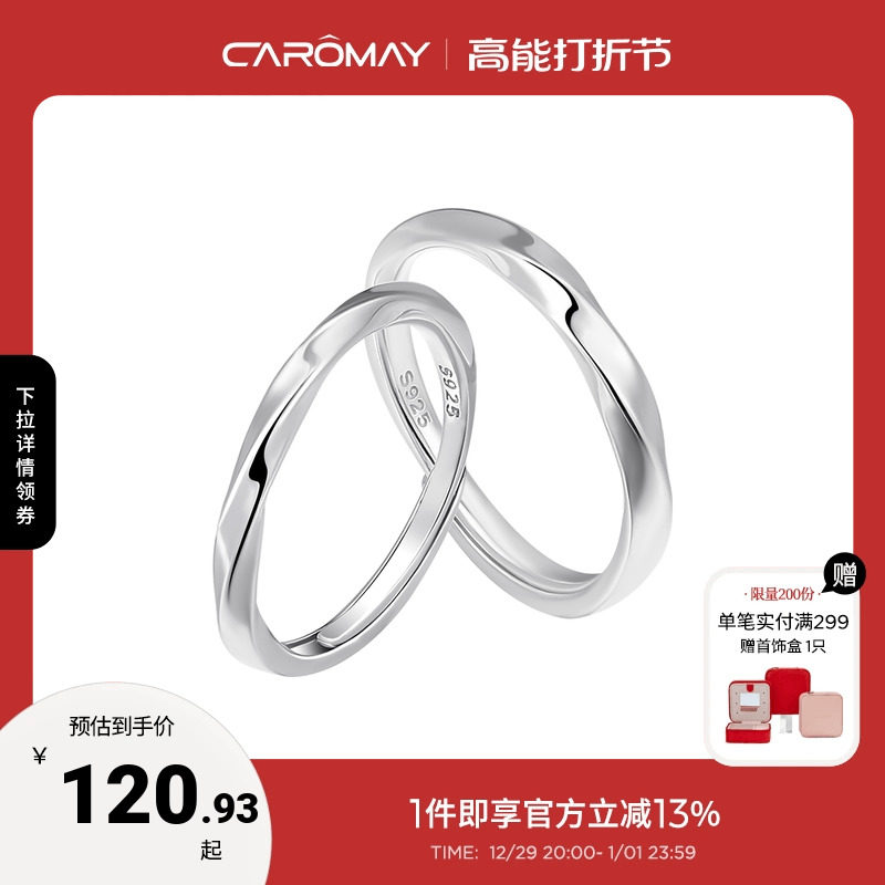 CAROMAY莫比乌斯环情侣戒指925纯银对戒设计七夕情人节礼物送女友