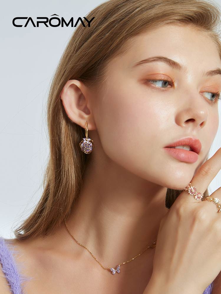 CAROMAY镂空玫瑰花球耳环长款ins轻奢耳坠2023新款潮显脸瘦的耳饰