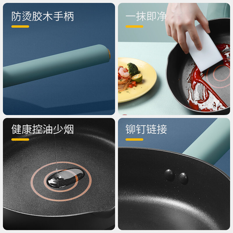 麦饭石平底锅不粘锅煎锅煎牛排煎饼煎蛋锅小燃气灶电磁炉通用不沾