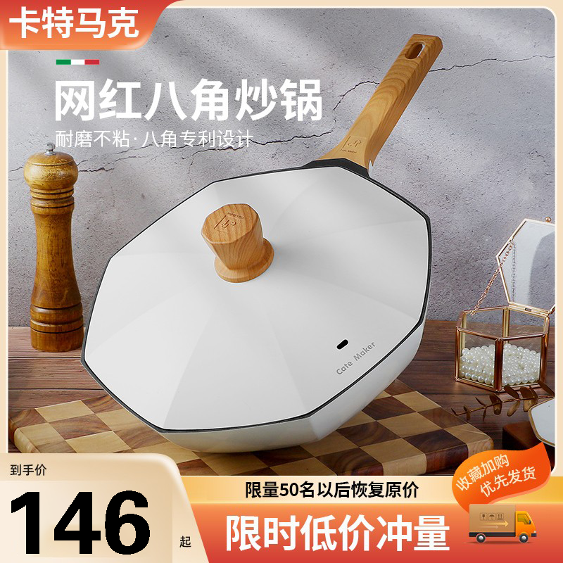 卡特马克八角锅不粘锅旗舰店家用炒锅电磁炉燃气灶专用平底炒菜锅