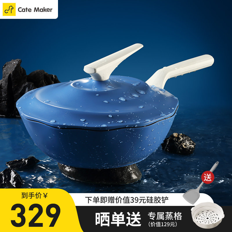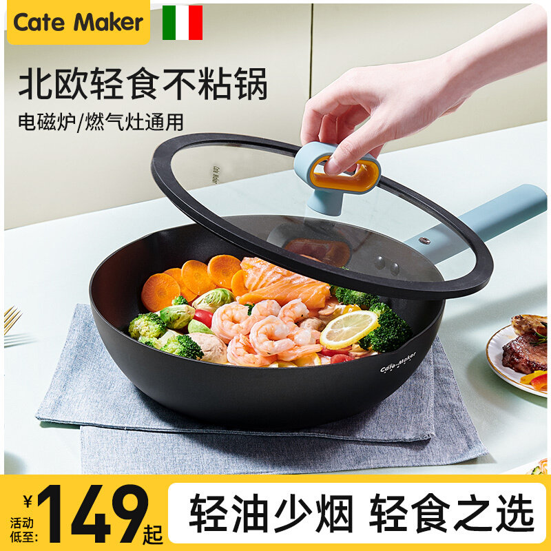 卡特马克炒锅不粘锅麦饭石色家用炒菜锅轻巧平底少油烟燃气灶通用