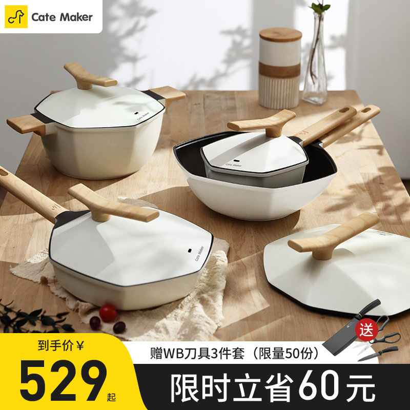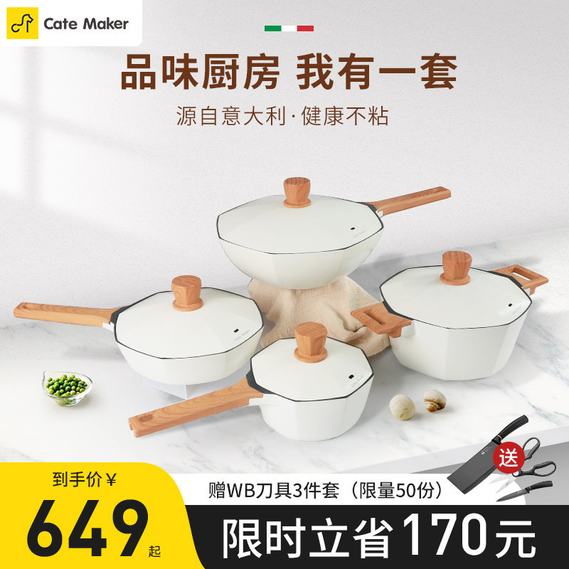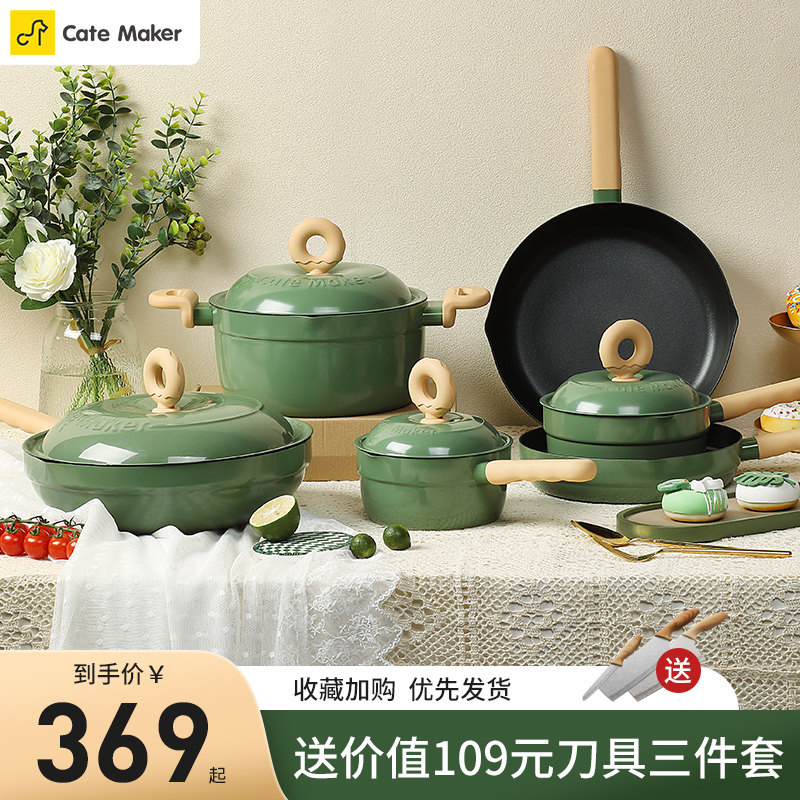 卡特马克甜甜圈不粘锅锅具套装家用炒锅麦饭石平底煎锅汤锅奶锅